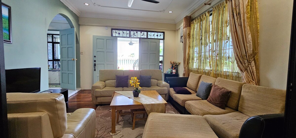 Esta es una casa de dos pisos de 2 plantas recién reformada de 4 dormitorios, 3 baños completos, 3 baños completos, sala de estar con televisión android, Netflix, cocina totalmente equipada, lavadora, estacionamiento gratuito en el lugar. Se encuentra en el centro, entre la ciudad de Miri y la ciudad de Lutong. El centro de prácticas en trineo a menos de 10 min y al aeropuerto está a unos 10-15 minutos dependiendo del tráfico. El Centro Comercial Saberkas está a pocos pasos de la casa. Tiene el mercado nocturno más grande, restaurantes, supermercado, lavandería.