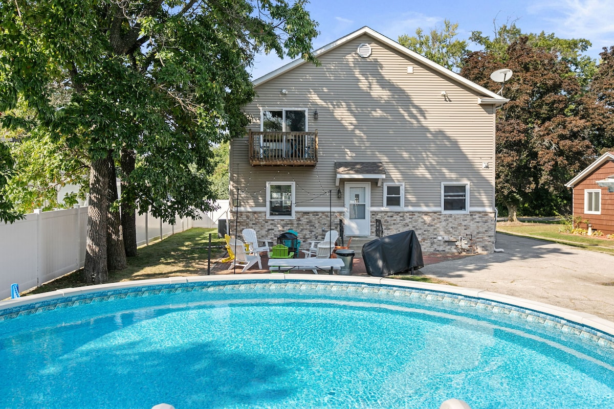 ¡Ubicado en el centro para caminar y explorar Notre Dame, restaurantes y todo lo que ofrece South Bend! Amplia casa de lujo de 6 dormitorios con diseño de concepto abierto, suite principal con ducha de spa y jacuzzi, y balcón con vistas a la piscina con terraza. Sala de cine con sillones reclinables, mesa de póquer y Xbox. Dos grandes áreas de entretenimiento con televisores de 65" y 85", sonido envolvente, wifi ultrarrápido, cocina de granito, gran parrilla de carbón, fogata y cómodas camas. Los juegos de interior y exterior lo hacen perfecto para familias y fines de semana de juegos.