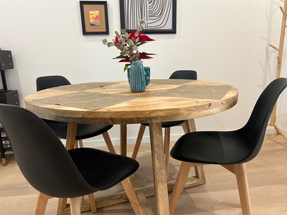 Alojamiento con estilo, perfecto para viajes en grupo, tendrás todo lo necesario para una estadía placentera en un amplio apartamento de dos habitaciones y dos baños en suite, dispone de una amplia cocina totalmente equipada, un lugar pensado para trabajar y un acogedor patio al aire libre. Parking Incluido para coche Pequeño
