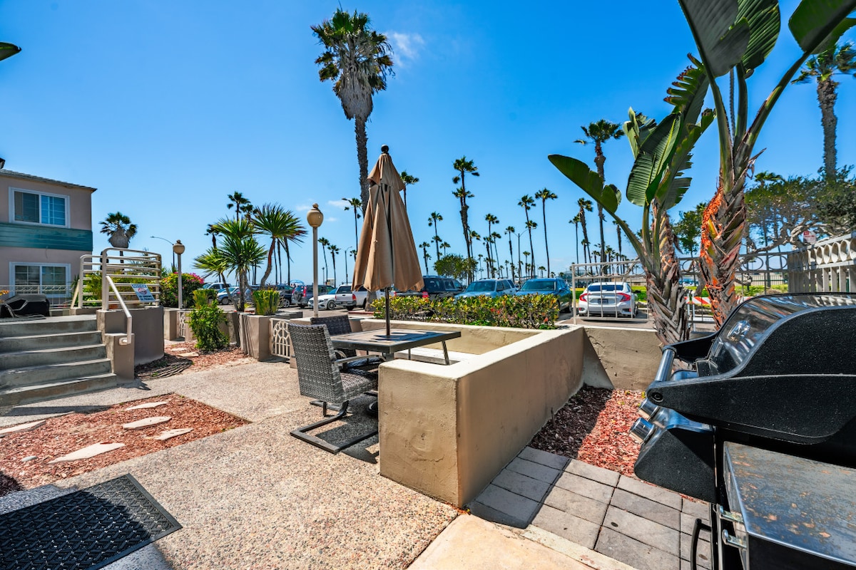 Nuestro apartamento de playa y el soleado patio lateral de la cancha, a pocos pasos del océano Pacífico, tiene todo lo necesario para unas vacaciones. ¡NUEVAS unidades de aire acondicionado en los dormitorios! Bicicletas (bicicletas de playa muy usadas), tablas de boogie, tumbonas, sombrillas y una parrilla en el patio al aire libre para relajarse después de un gran día en la playa. A los huéspedes les ENCANTA mi ubicación, a pocos pasos de la cancha hasta la playa y la bahía, a poca distancia a pie de restaurantes y atracciones en Belmont Park, pero con una cancha tranquila para relajarse. Incluye estacionamiento para 1 coche.