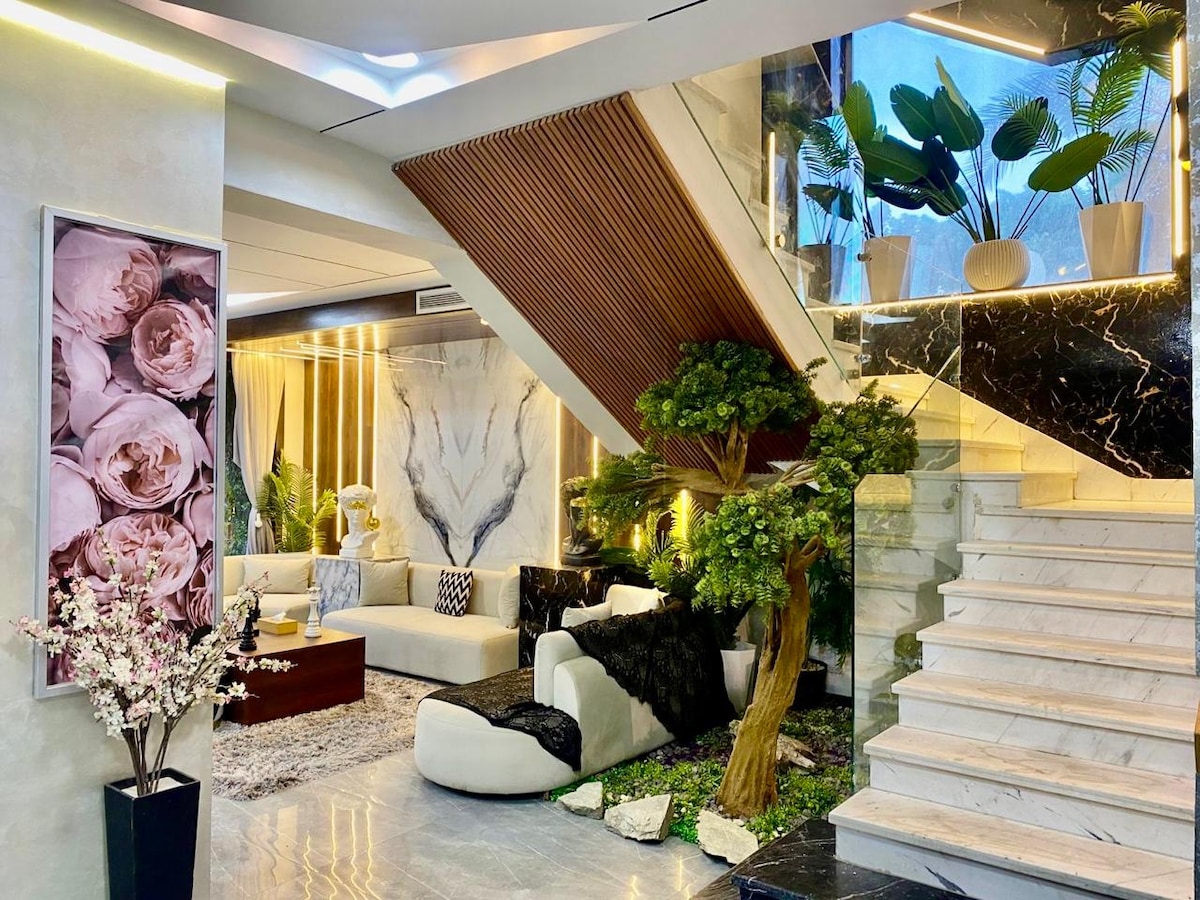 ¡Te damos la bienvenida a la escapada de tus sueños! Nuestro sereno Airbnb ofrece una experiencia única con múltiples salones al aire libre para tomar el sol o contemplar las estrellas, rodeados de una exuberante vegetación. Relájate junto a una lujosa fuente que añade un toque relajante. Perfecto para familias, incluye todos los servicios que necesitas, como una cocina totalmente equipada y una lavadora para mayor comodidad. Ya sea que busques paz, diversión o comodidad, nuestra casa es un oasis donde el lujo se encuentra con la naturaleza.