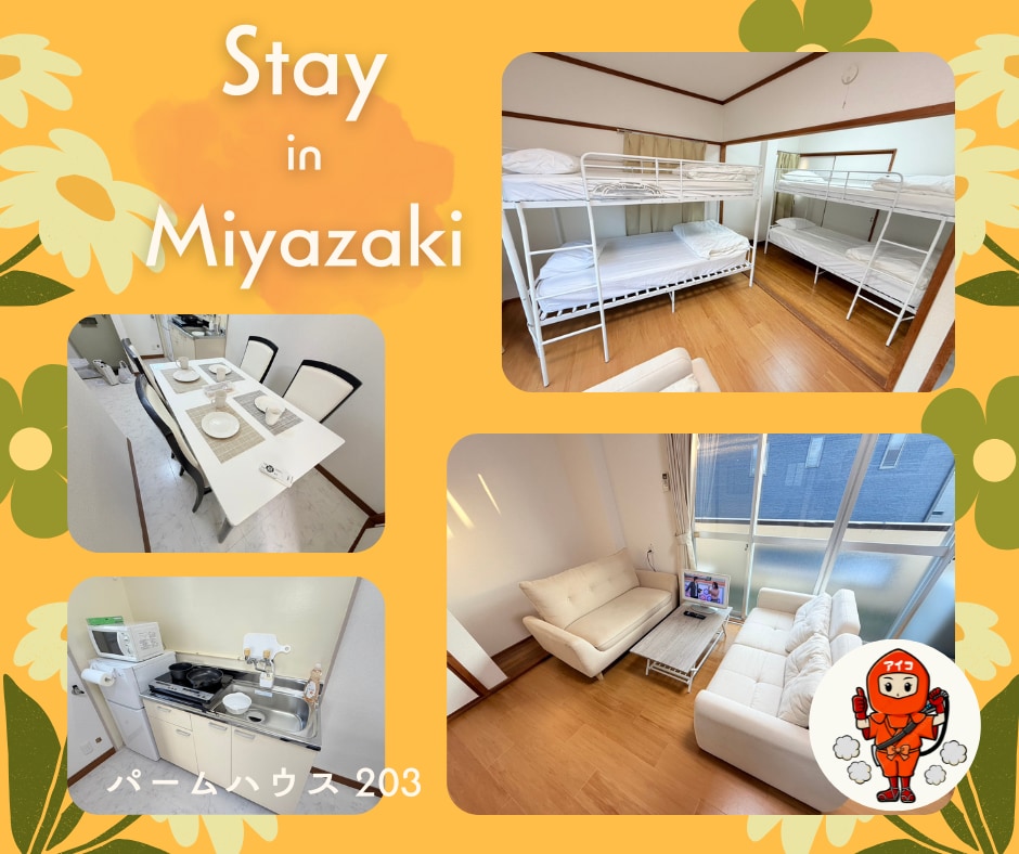 【小型犬可】宮崎市村角町|アイビースタジアムまで15分|軽自動車駐車場あり|最大4名|Wi-Fi無料