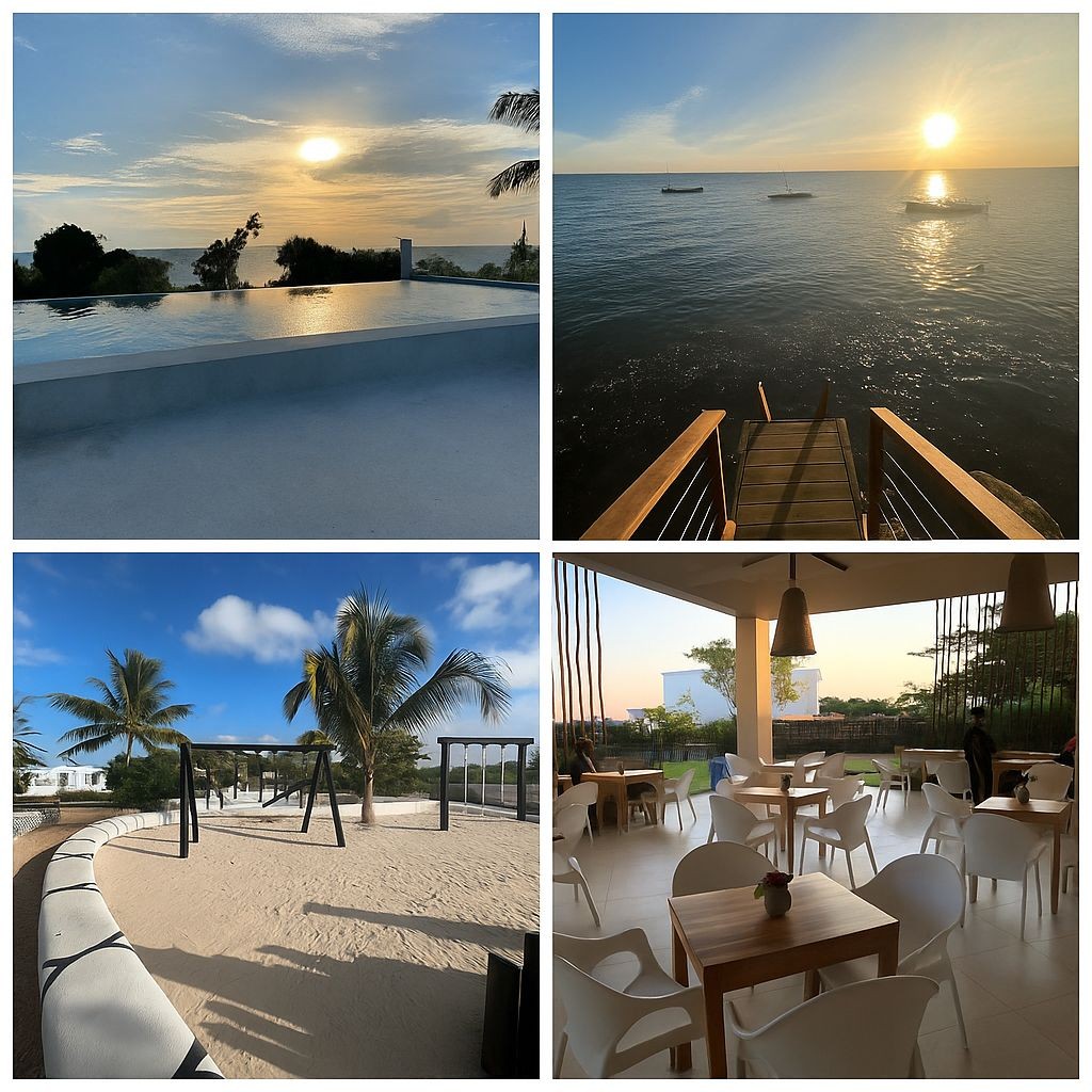Una lujosa escapada tropical en la serena costa oeste de Zanzíbar. Nuestra espaciosa villa, perfecta para familias, ofrece impresionantes vistas a la bahía de Menai, cuatro dormitorios con baño, cocinas interiores y exteriores, y una impresionante piscina frente al mar. Disfruta de comodidades modernas como aire acondicionado, televisores inteligentes, WiFi y una PlayStation. Relájate en nuestro solárium frente a la impresionante vista al mar. A solo 15 minutos de la ciudad de Zanzíbar y a 20 minutos del aeropuerto, disfruta de tu última escapada del ajetreo y el bullicio.