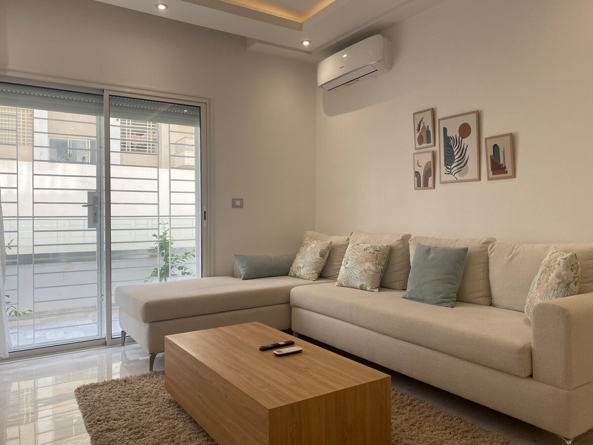Entire appartement, spacious, bright and very pleasant, 15 minutes away from Tunis city center and 12 minutes away from the airport by Taxi. quiet and secure residential area, the apartment has 2 bedrooms, 2 bathrooms, a kitchen and a large living room.