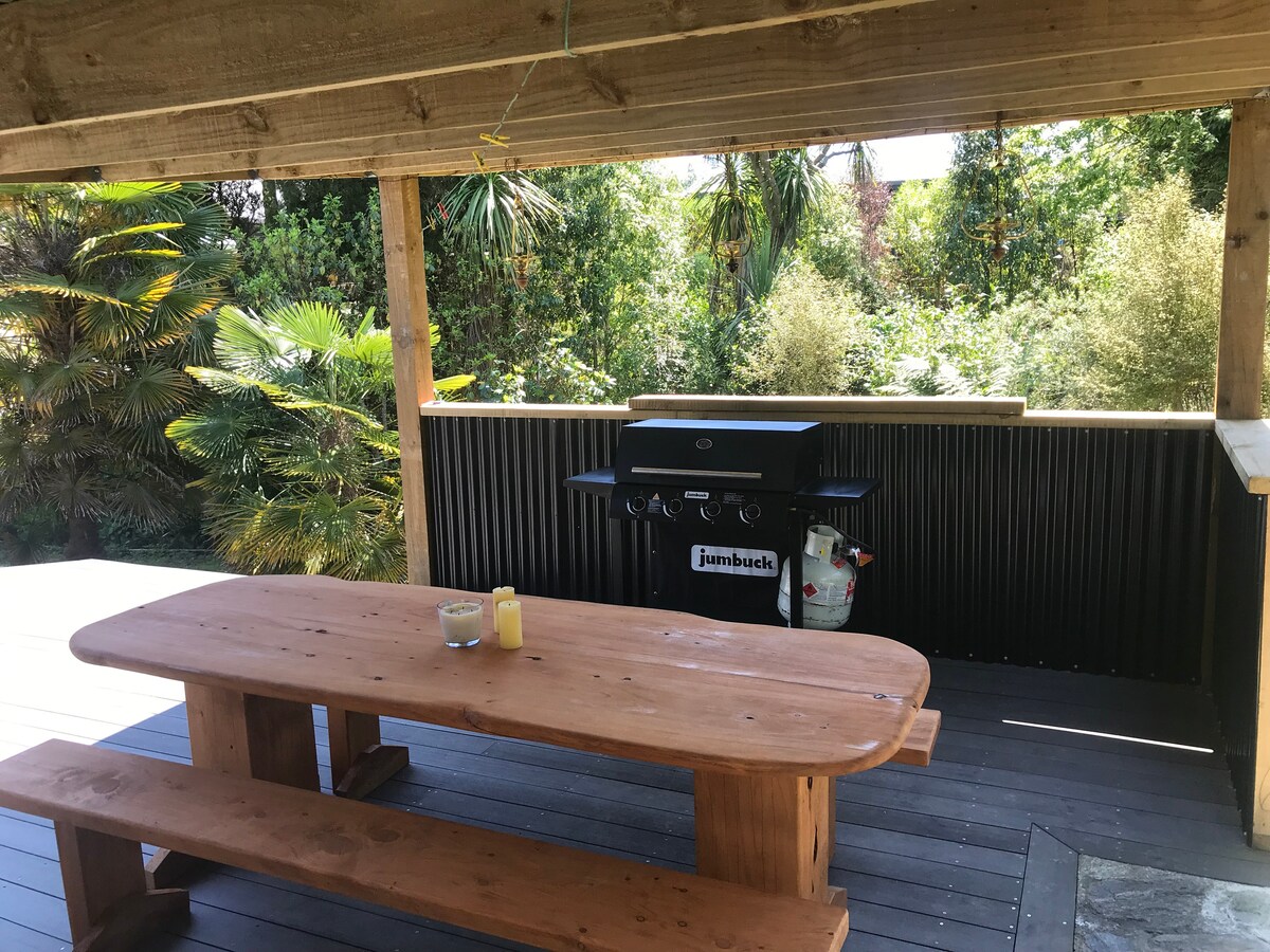 The Nest at Hurunui Jacks (baño exterior y chimenea)