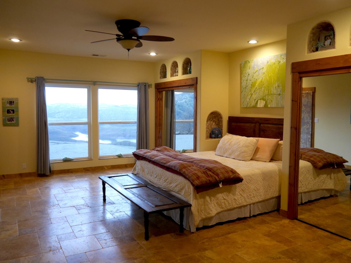The Hideaway es una encantadora casita de una habitación situada en la cresta exterior de la propiedad, The Confluence. Despierta con el amanecer con una exuberante *Vista* del campo natural desde tu terraza privada. Se accede a The Hideaway por un sendero (200 pies) desde la casa principal. El baño privado está fuera de la casa principal (a 200 pies a pie de la habitación). Desde el área de estacionamiento hasta la habitación, hay aproximadamente 400 pies. No hay cocina ni electrodomésticos de cocina que no sean un hervidor de agua caliente y una mini-nevera.
