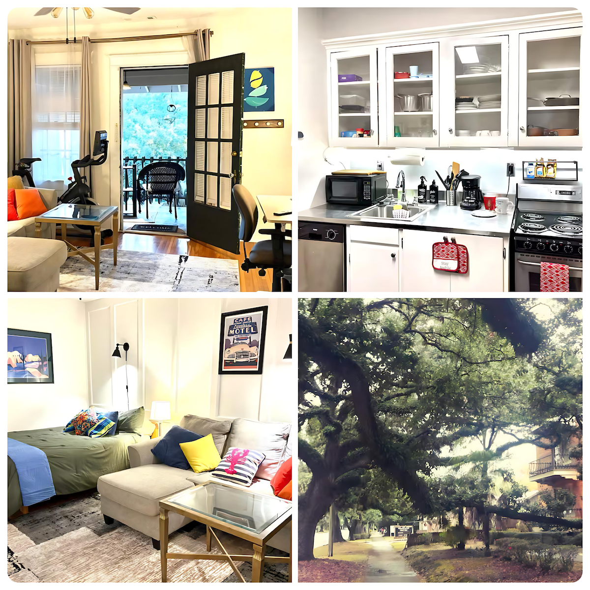 Make yourself at home in this cozy, artist-designed apartment in the heart of the DeTonti historic district, just steps from downtown Mobile. This true mid-century gem is right around the corner from Greer’s Market and rooftop bar, local coffee shop favorite Nova Espresso, and a short walk or bike ride to other area restaurants, shops, and museums. Off street parking just a few blocks from the parade route makes this a great Mardi Gras landing pad for up to two guests.