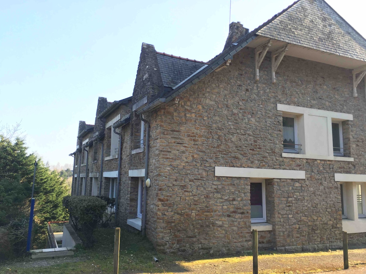 Estudio independiente en una casa de campo de piedra, cerca del pueblo y de las tiendas (1 km), y de las playas y los senderos costeros (6 km). Dúplex con altillo, sala de estar con sofá cama (140), cuarto de baño con inodoro, cocina independiente y en el altillo una cama doble sobre futón (140). Sábana, ropa de cama y limpieza opcional. Ideal para una pareja, venga a disfrutar del aire puro y descubrir la región con sus playas y puertos, sus ríos y sus rías, sus rutas de senderismo junto al mar (GR34) y en el bosque.