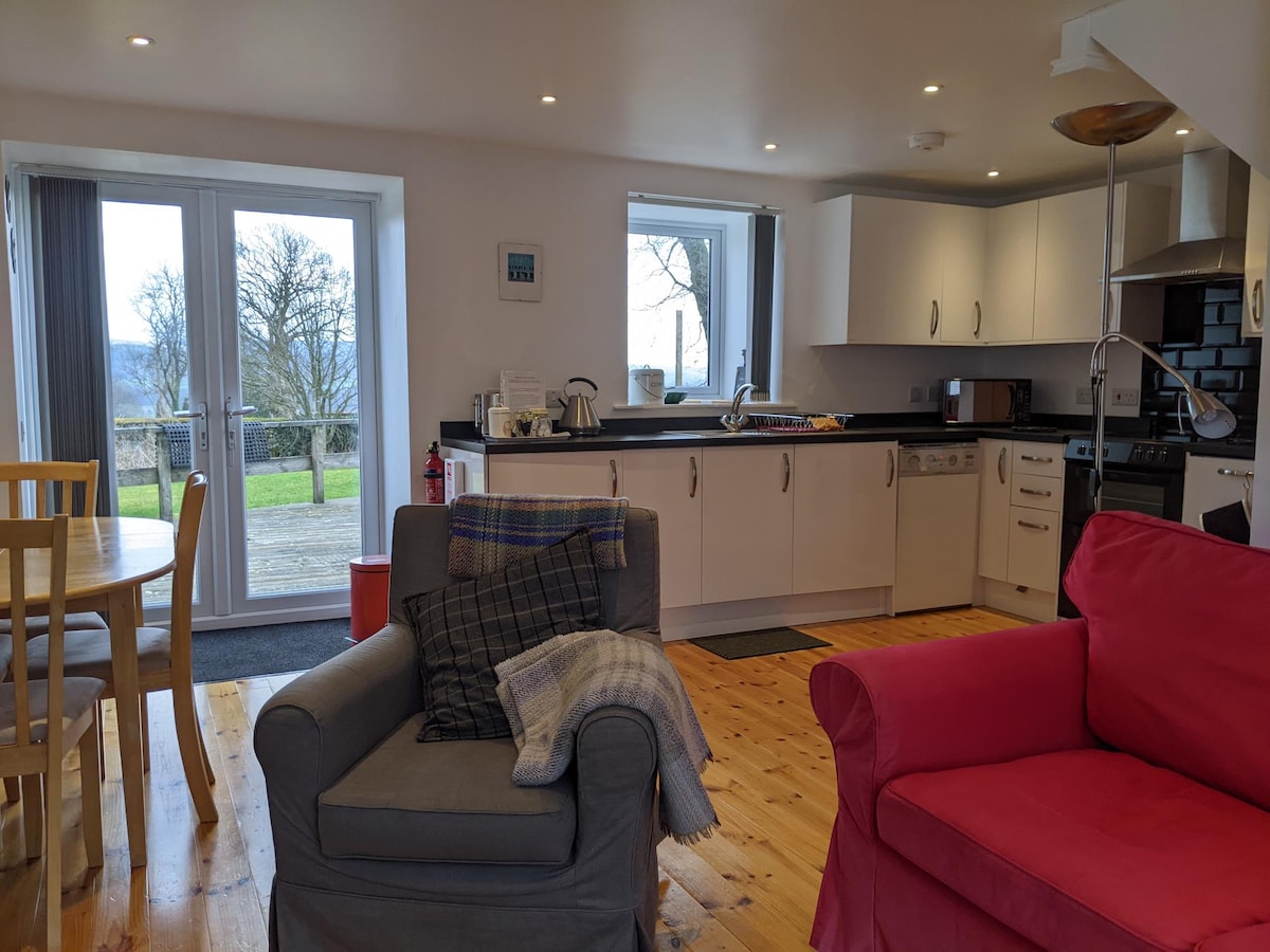 Stables Cottage es una cómoda casa apta para perros y niños para hasta 6 personas, con dos dormitorios dobles y un sofá cama. La cocina bien equipada tiene capacidad para seis personas, mientras que la sala de estar tiene dos sofás frente a la estufa multicombustible. Hay un jardín privado cerrado detrás de la cabaña, con columpios y una quemadura que atraviesa el bosque a través del patio. Venados, ardillas rojas, búhos, tejones y liebres viven cerca, mientras que el campo circundante es espectacular para pasear y andar en bicicleta.
