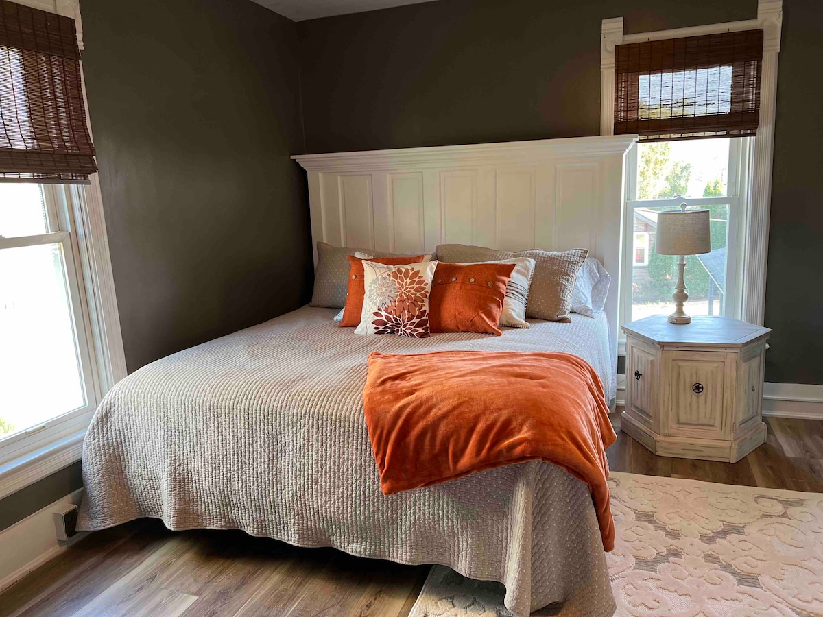 Amplio apartamento en el centro de la ciudad en el segundo piso disponible con 2 dormitorios. Una cama tamaño king y una cama individual. El segundo dormitorio tiene una cama tamaño queen (debes pasar por el dormitorio principal para llegar al otro dormitorio). Ubicado en el centro de la ciudad, en el condado de Mohican, cerca de piragüismo, senderismo, la playa y el puerto deportivo de Pleasant Hill, la garganta, la torre de fuego, el puente cubierto, el castillo de Landoll y mucho más. Camina hasta el Bistro local y disfruta de una comida increíble, al este de Chicago justo al otro lado de la calle o prueba Trails End Pizza a 2 millas