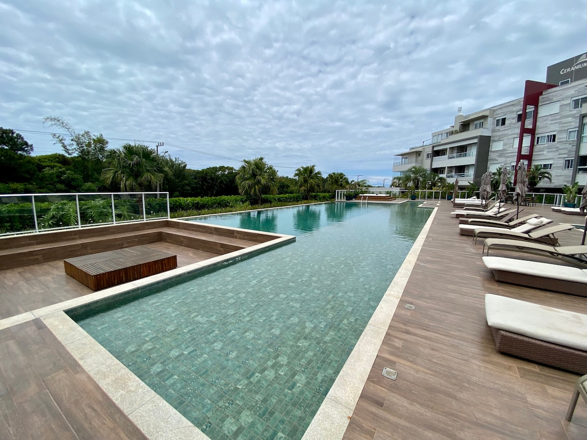 Relájate en este espacio tranquilo y elegante. Residencial de alto nivel, en el paseo marítimo de Novo Campeche, el barrio más destacado de Florianópolis en la actualidad. Barrio acogedor, con amplias calles asfaltadas, ciclovía, playa apta para practicar surf y kitesurf. Cerca de panadería, supermercado, food-truck, salón de belleza y galería con opciones gastronómicas, se puede hacer de todo a pie. El condominio cuenta con salón con mesa de juegos, piscina y gimnasio con cita previa