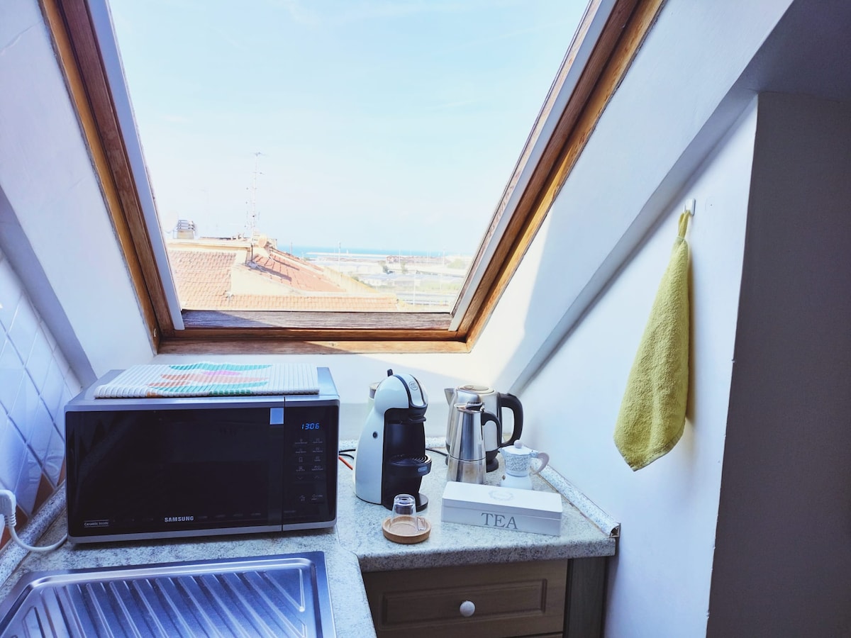 Apartamento abuhardillado, recientemente reformado, en el barrio de los Arcos. Privacidad absoluta: acceso exclusivo, sin espacios compartidos. La estación de tren y el centro están a solo 10 minutos a pie. En las inmediaciones: supermercados, bares, restaurantes y pizzerías. La Mole Vanvitelliana, el puerto de pasajeros de Ancona y el aparcamiento Archi FlixBus están frente a ti, lo que garantiza el acceso a todos los medios de transporte. Ideal para llegar a la sede de la Marina Militar y los astilleros.
