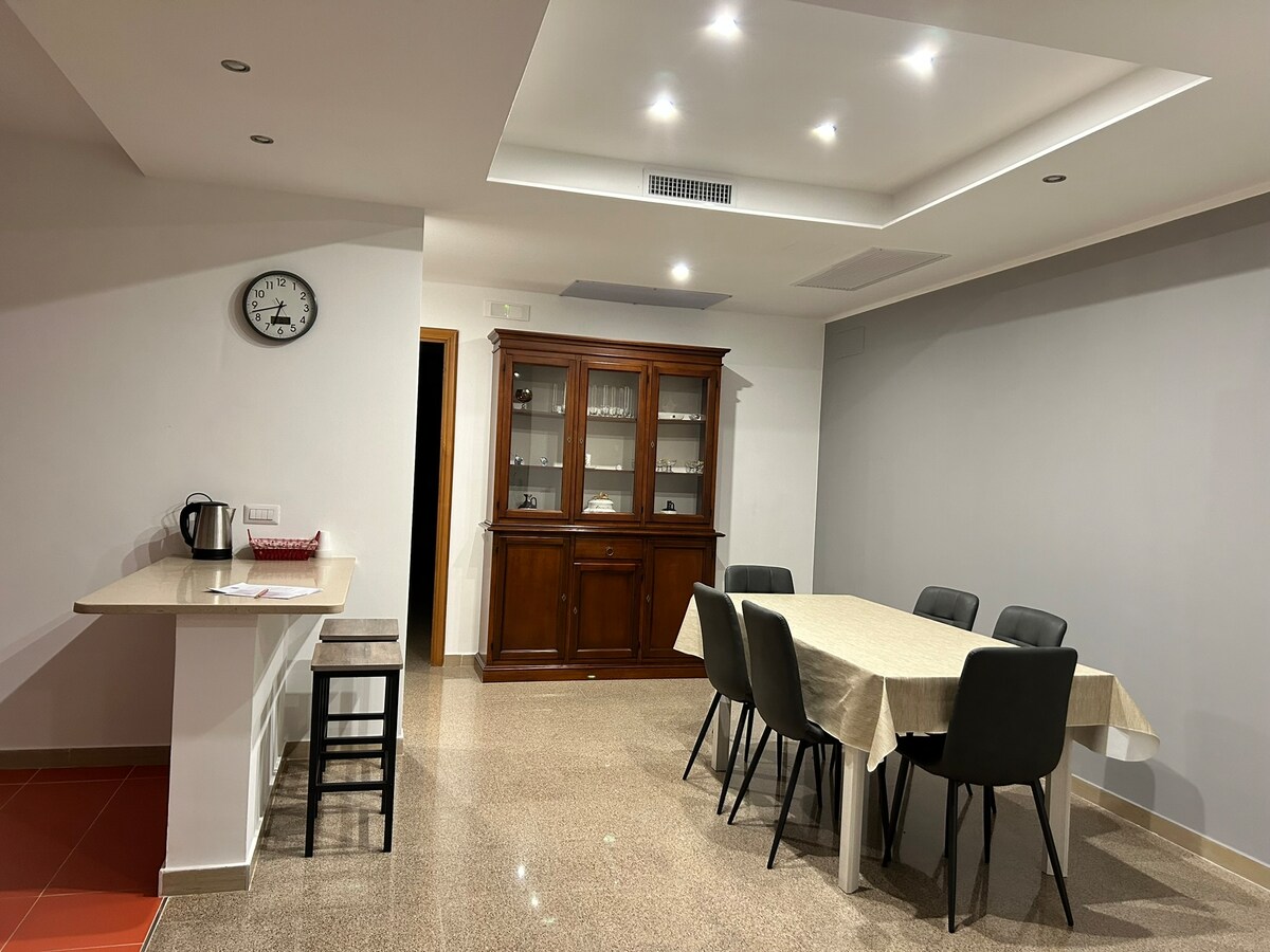 Apartamento de 106 metros cuadrados con dos balcones, ideal para familias o grupos. - Habitación doble con balcón - Habitación con 2 camas individuales y balcón de conexión con cocina pequeña. - Amplio y luminoso salón con sofá cama, TV inteligente, estantería, wifi - Nuevo baño con ducha amplia Decoración vintage con toques modernos. Casa céntrica, cerca de todos los servicios y estacionamiento gratuito en las inmediaciones. A solo unos pasos del lugar de nacimiento de Domenico Modugno.