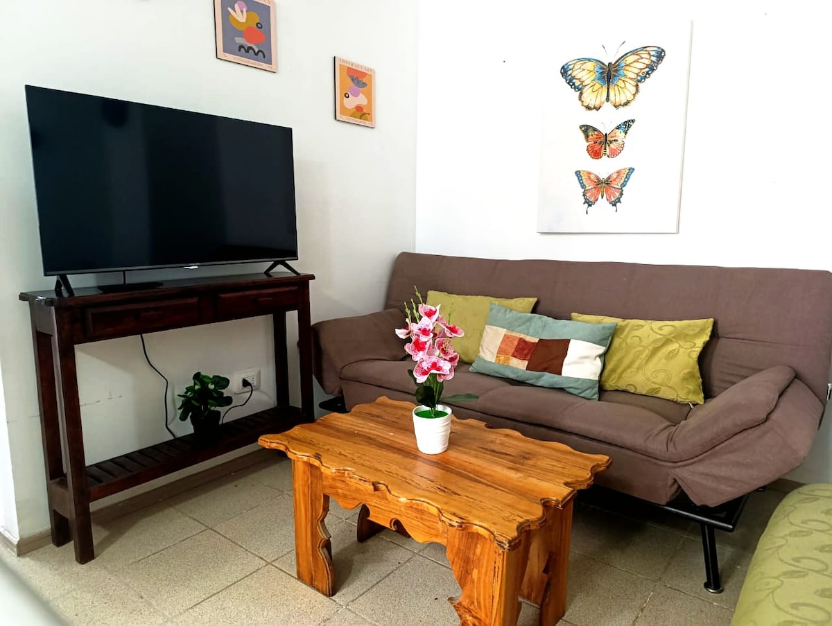 A minutos de la playa y del casco histórico, disfruta de la comodidad de dos habitaciones con baño privado, una cocina completamente equipada, comedor y televisión. Relájate en la terraza con pasto sintético. Descubre las atracciones cercanas como el Faro Monumental y la Avenida del Mar con sus múltiples playas, o pasea por el casco histórico con su arquitectura neocolonial y 29 iglesias. Perfecto para vacaciones en familia o escapadas románticas.