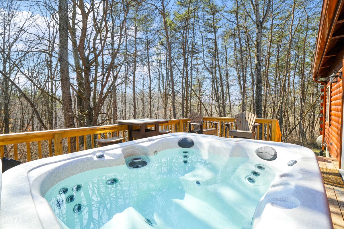 Welcome to the quieter side of hocking hills where you'll escape the hustle in exchange for a cabin in the woods - privacy, seclusion, and beautiful views to enjoy at sunrise, sunset, and everything in between. Designed intentionally to provide guests with a relaxing, calming experience, you will leave your getaway feeling refreshed and renewed. Your hardest decision will be whether to warm yourself by the cozy fireplace or to relax in the bubbling hot tub!