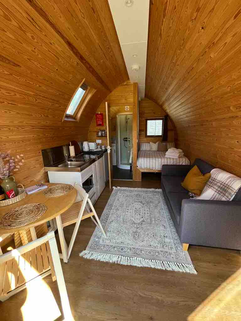 WILLOW LODGE, nuestro lujoso glamping pod tiene capacidad para 2 personas (solo adultos). Tiene su propia minicocina, ducha e inodoro privados, TV/DVD, zona de estar privada y calefacción para su uso durante todo el año. Toda la ropa de cama y toallas están incluidas junto con té, café, azúcar y leche. Somos un sitio solo para adultos y con una botella de Prosecco de cortesía, nuestros pods son perfectos para una escapada romántica en pareja. Willow Lodge también cuenta con su propia bañera de hidromasaje cubierta por un cenador de madera. ¡Sumérgete, relájate y disfruta!