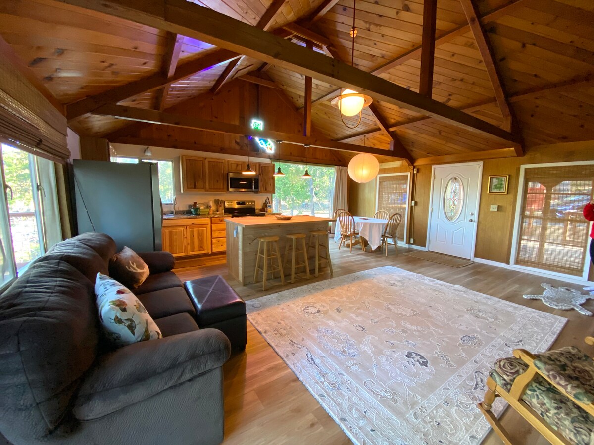 Nuestra cabaña es una escapada perfecta a la montaña. Ya sea que estés visitando el cercano lago Twain Harte, Pinecrest, Yosemite o simplemente quieras relajarte y disfrutar sentado en la terraza trasera con una copa de vino; ¡encontrarás nuestra casa una estancia muy relajante y tranquila con un corto paseo de 4 minutos a pie de la ciudad! En los inviernos, disfruta de una chimenea de leña y observa cómo cae la nieve en los grandes y pintorescos ventanales delanteros y en el alto techo abierto con vigas. Leña no incluida. Situado en un barrio tranquilo para desconectar del ajetreo