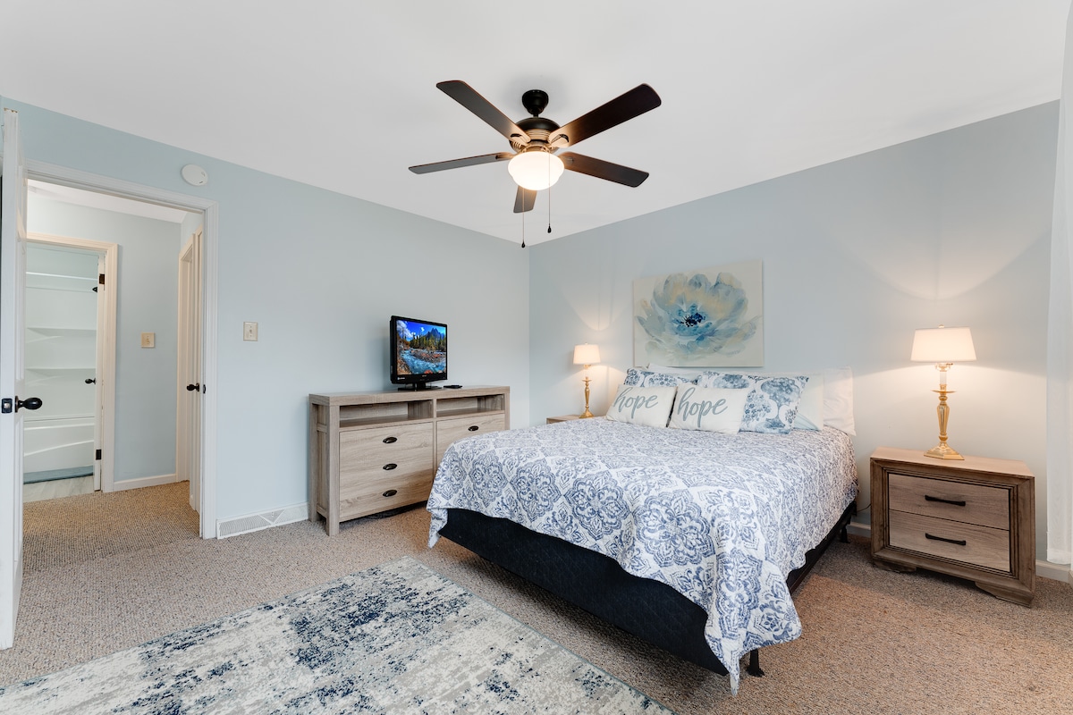 Almost Heaven Away From Home es una casa adosada de 2 dormitorios y 2 baños y medio ubicada en un barrio tranquilo. Comienza el día en la terraza disfrutando de la hermosa y tranquila vista de las montañas de Virginia Occidental. Con una ubicación céntrica para ir de compras, aventuras, ambos campus de WVU y restaurantes elegantes que llenarán tu día. Termina el día junto a la hoguera contemplando la puesta de sol detrás de las montañas en una vista pintoresca.