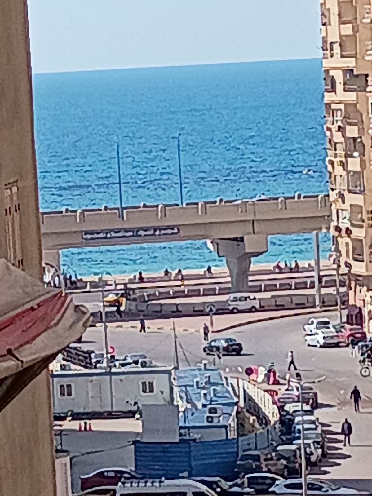 Un hermoso apartamento frente a la playa en el corazón de Alejandría con impresionantes vistas al mar desde cada habitación. Ubicado en el piso 11, ofrece espacioso, el apartamento está totalmente climatizado, un gran salón, 3 dormitorios y una cocina totalmente equipada. Disfruta de WiFi, TV vía satélite y sábanas y toallas limpias. Con capacidad para hasta 6 huéspedes, es perfecto para relajarse. La vibrante ubicación cerca de la playa y la carretera principal puede tener ocasionalmente sonidos de la vida de la ciudad durante las horas pico, lo que se suma al ambiente animado.