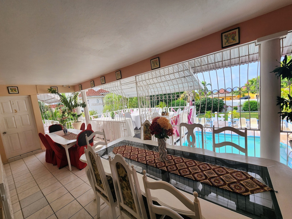 Recientemente renovada a un alto nivel europeo que ofrece instalaciones de planta abierta en suite, esta habitación tiene una cálida sensación de lujo. Esta casa familiar independiente en un suburbio de moda de Montego Bay, a solo 10 minutos en coche del aeropuerto. Tu anfitrión, Jermaine, en tu vida, te ayudará a planear tus vacaciones perfectas. Te aseguramos una cálida bienvenida, un desayuno encantador y habitaciones espaciosas y limpias para tu estancia en la costa norte de Jamaica. Si necesitas más habitaciones, ¡pregunta! Estamos aquí para asegurarnos de que tengas una estancia excelente.