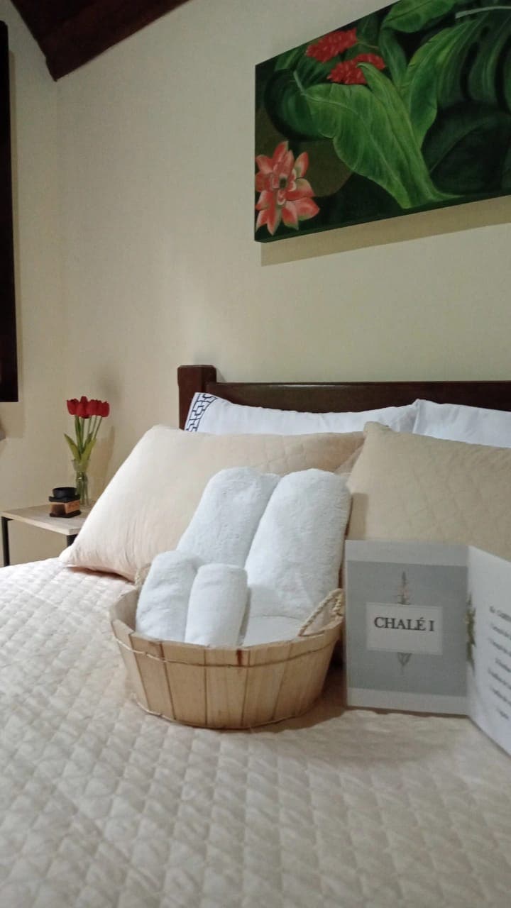 Você terá a oportunidade de curtir um chalé de madeira que oferece muitos itens para seu conforto: lençóis, toalhas, sabonete, sais de banho,cafeteira, panelas, fogão elétrico , temperos, micro, frigobar, hidro, lareira com lenha, ventilador, livros , jogos, TV com Netflix, toalheiro e lençol térmico, estacionamento, rede, 2 mesas, 2 cafés expresso cortesia e muita paz. Temos apenas outras 2 cabanas. Todo acesso é asfaltado e estar numa área de 1 alqueire com total tranquilidade. Um achado!