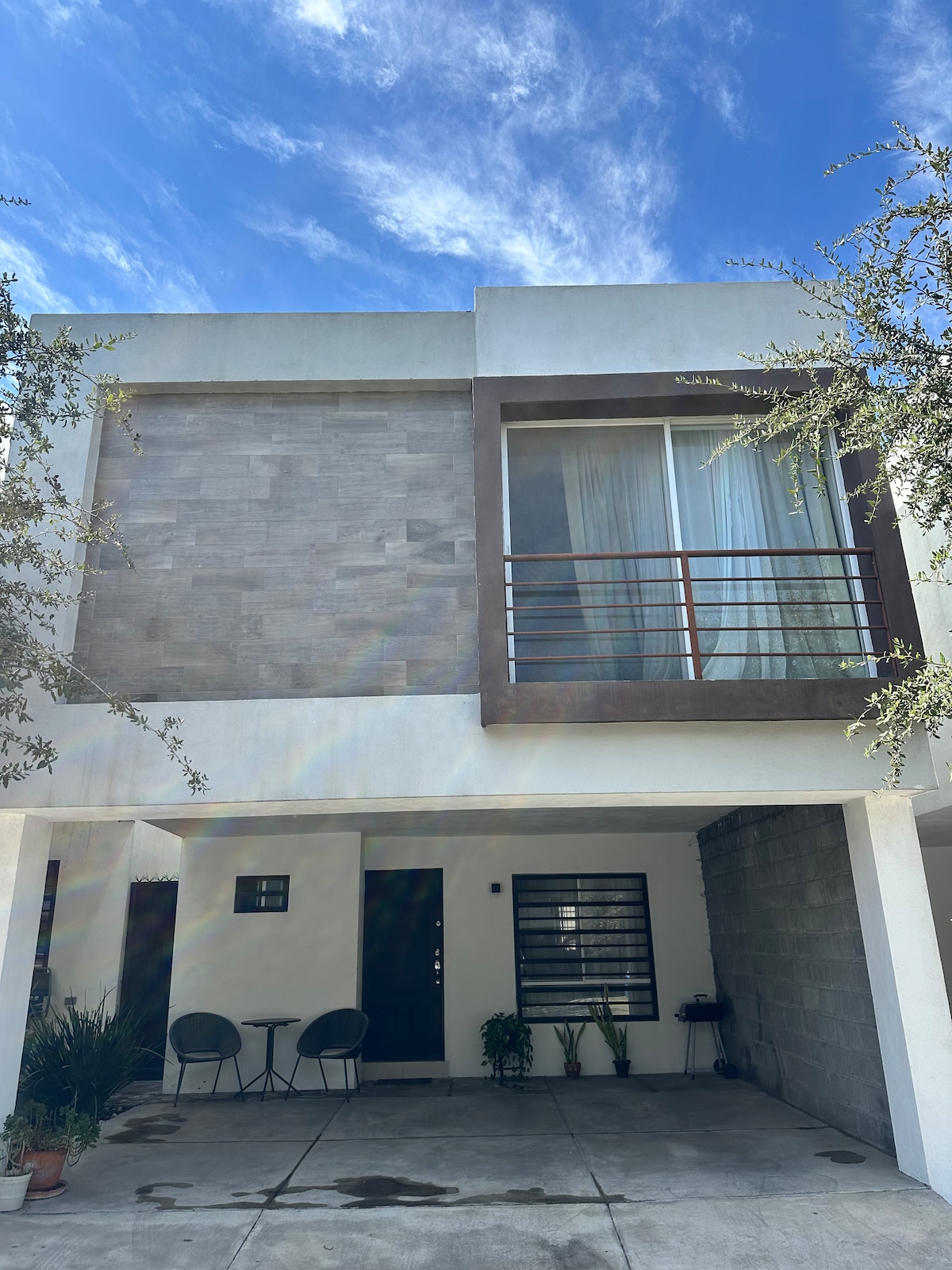 Facturamos. Escápate a una casa cálida, moderna y recién renovada estilo boutique. A 19 min del aeropuerto y 35 min del centro de Monterrey, en privada con vigilancia 24/7, cerca de parques industriales y tiendas. Disfruta baños boutique, recámaras A/C y calefacción, pantallas mini LED de 75” con sonido Bang & Olufsen en sala y recámara. Apps de streaming, Xbox, juegos de mesa y patio con TV, asador y muebles exteriores. Muebles con piedra Saint Laurent. Todo para que vivas una gran experiencia