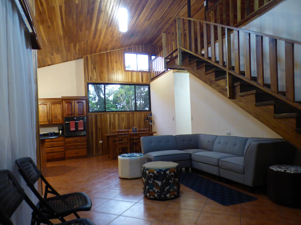 Ubicación 🌿 inmejorable: - A solo 3 km (1,86 millas) de la Reserva del Bosque Nuboso de Monteverde. - A poca distancia de la Reserva Curicancha, Bajo del Tigre y la cascada de Monteverde. 🏡 Moderno y acogedor: departamento en el tercer piso con todo lo esencial para una estancia cómoda. WiFi 📶 rápido y confiable: Internet de 100 Mbps, ideal para el trabajo a distancia, la transmisión o mantenerse conectado. Estancia 🌱 ecológica: tu visita apoya directamente la conservación local, protegiendo la increíble biodiversidad de Monteverde.