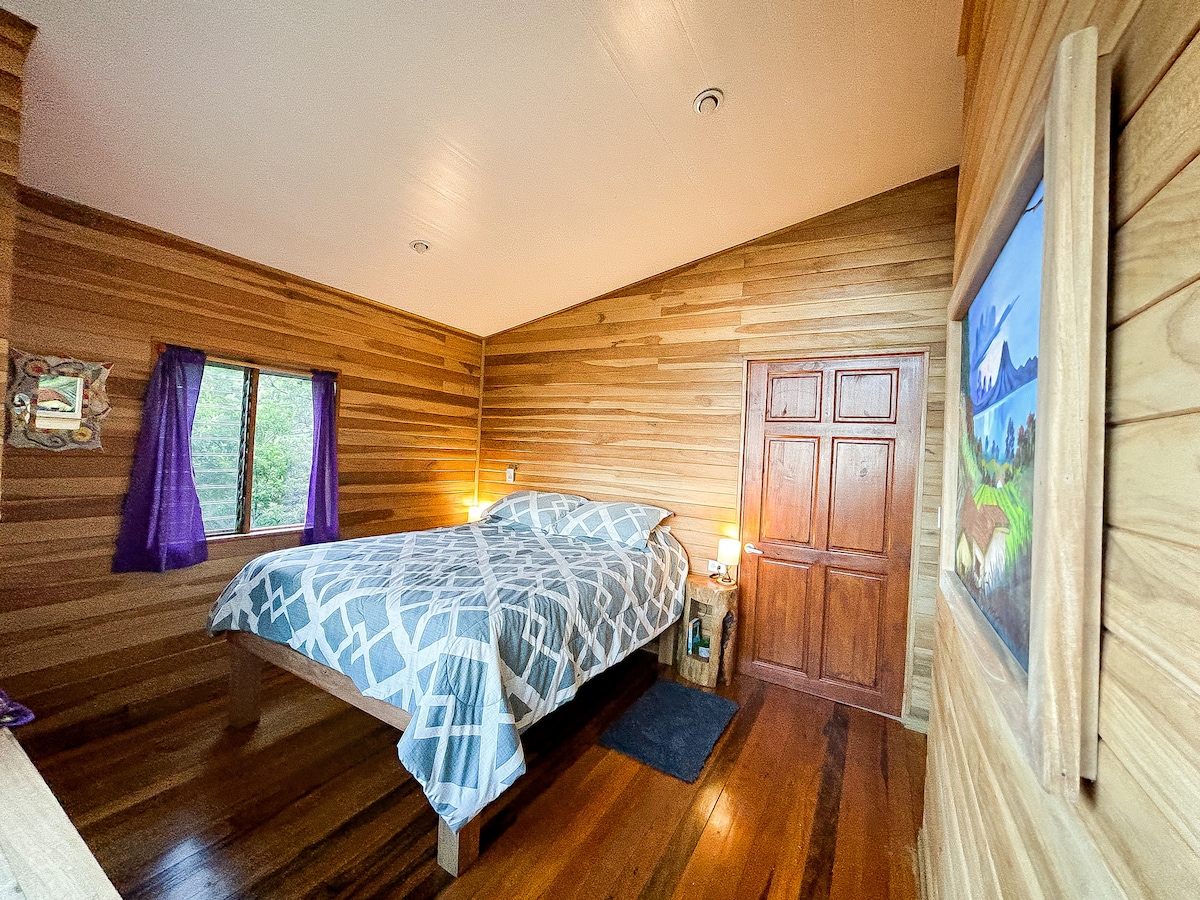 Speedy WiMax WiFi up to 20 mbps! Beautiful wood cabin is nestled amidst dense tropical rain forest with a view of the Bay of Nicoya in the distance. A constant flurry of beautiful birds surround the cabin throughout the day including colorful toucanets, mott motts, toucans, woodpeckers and more! White face monkeys visit the cabin early mornings, and the sound of howler monkeys are often in the near distance. The homes large windows will bring the outside world to you even while indoors.