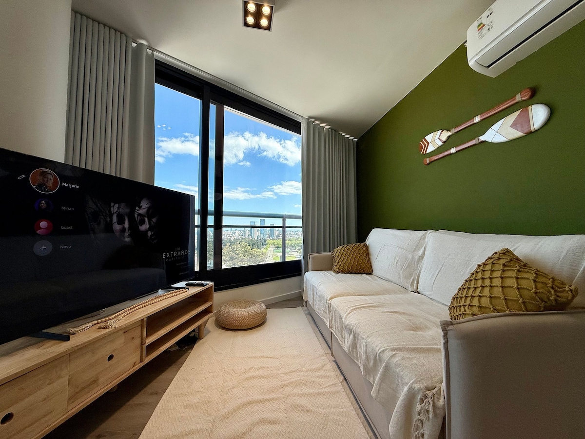Estudio luminoso y espacioso en el piso 18 con vistas panorámicas de Montevideo. Incluye una cama de tamaño completo convertible en escritorio, cocina completa, baño, armarios, sofá cama, Smart TV de 55", Internet de fibra 5G, lavadora en la unidad y balcones. Disfruta de servicios prémium: conserje 24/7, piscina cubierta climatizada, piscina exterior, gimnasio, sauna y espacios de coworking panorámicos en un entorno arquitectónico único. Barrio vibrante, a pasos de la playa del Buceo, tiendas y excelente transporte público. Más lujo por menos. Reserva ahora.