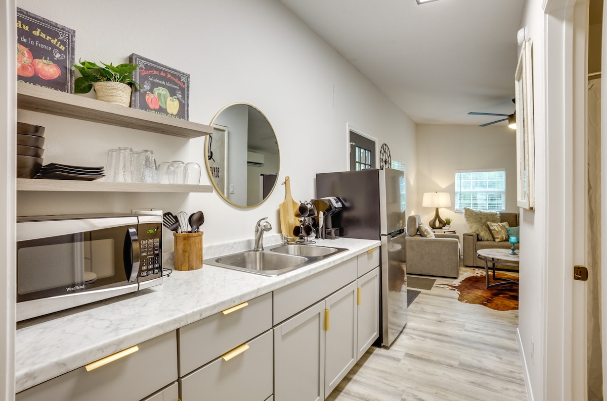 Este encantador alquiler vacacional en Shenandoah es el alojamiento perfecto para parejas y grupos pequeños que buscan un lugar cómodo para relajarse entre aventuras. La casa de 2 dormitorios y 1 baño está en una ubicación estupenda, así que aventúrate a asistir a conciertos locales, comprar en The Woodlands Mall y pasear por el barrio. Además, la casa está cerca de varios hospitales y centros médicos, ideal para profesionales de la salud que viajan. Otras ventajas incluyen estacionamiento fuera de la calle, Smart TV y wifi.