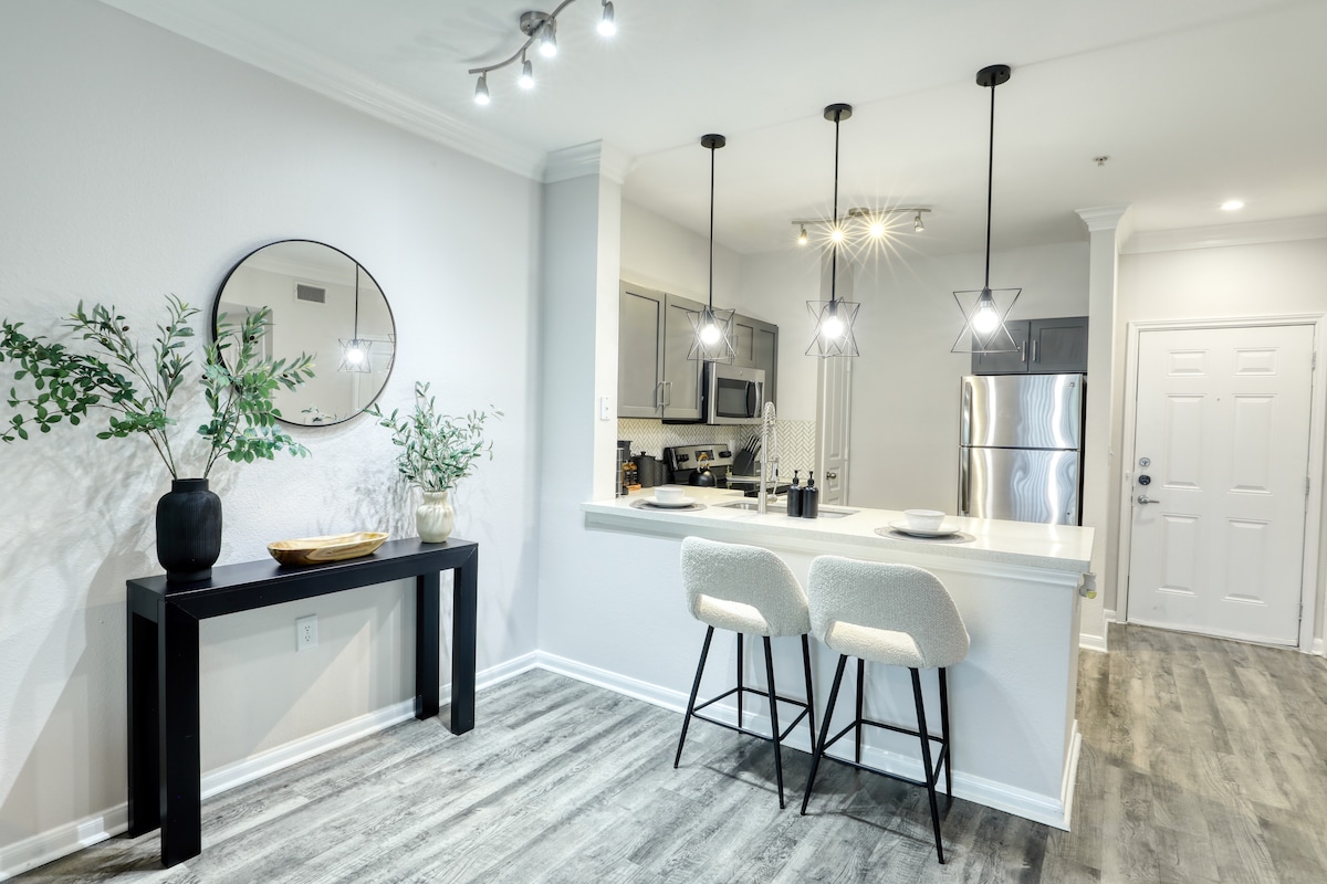 Una ubicación céntrica para los visitantes que vienen a Houston con negocios en el centro de la ciudad, centro de convenciones, lugares deportivos y la Universidad de Houston, Tsu y South Texas College of Law, todo a menos de 2,4 millas. El apartamento es acogedor pero abierto. Los espacios de estar son de planta abierta, mientras que el baño y el dormitorio son más privados. Es elegante pero cómodo, personal sin el desorden. El acceso rápido a la I-59 y la I-45 es fácil llegar a puntos más lejanos, como el Centro Médico.