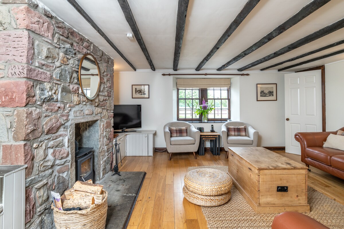 Relájate en esta escapada única y tranquila, adecuada para una familia grande, dos familias jóvenes o como una estancia indulgente para amigos o parejas. Esta encantadora casa de campo ofrece una bañera de hidromasaje de primera línea y una sauna de leña, así como una AGA para probar la vida rural. El jardín trasero cerrado es ideal para niños y amigos peludos por igual. Descubre una casa acogedora pero espaciosa, rodeada de naturaleza y un montón de agradables paseos... ¡si puedes alejarte de la cabaña!