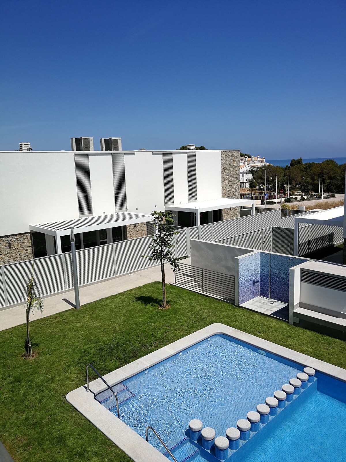 La casa ofrece espacio para 6 personas, cocina y salón repartidos en 50m2, acceso a la piscina y garaje cerrado. En la planta superior se encuentran los 3 dormitorios, uno de ellos con baño en suite. El generoso diseño de la zona exterior cuenta con una zona privada de relax y un área cubierta para sentarse. La calefacción por suelo radiante proporciona a las casa de Alcossebre un agradable calor intrínseco, incluso en temporada baja y en los meses de invierno.