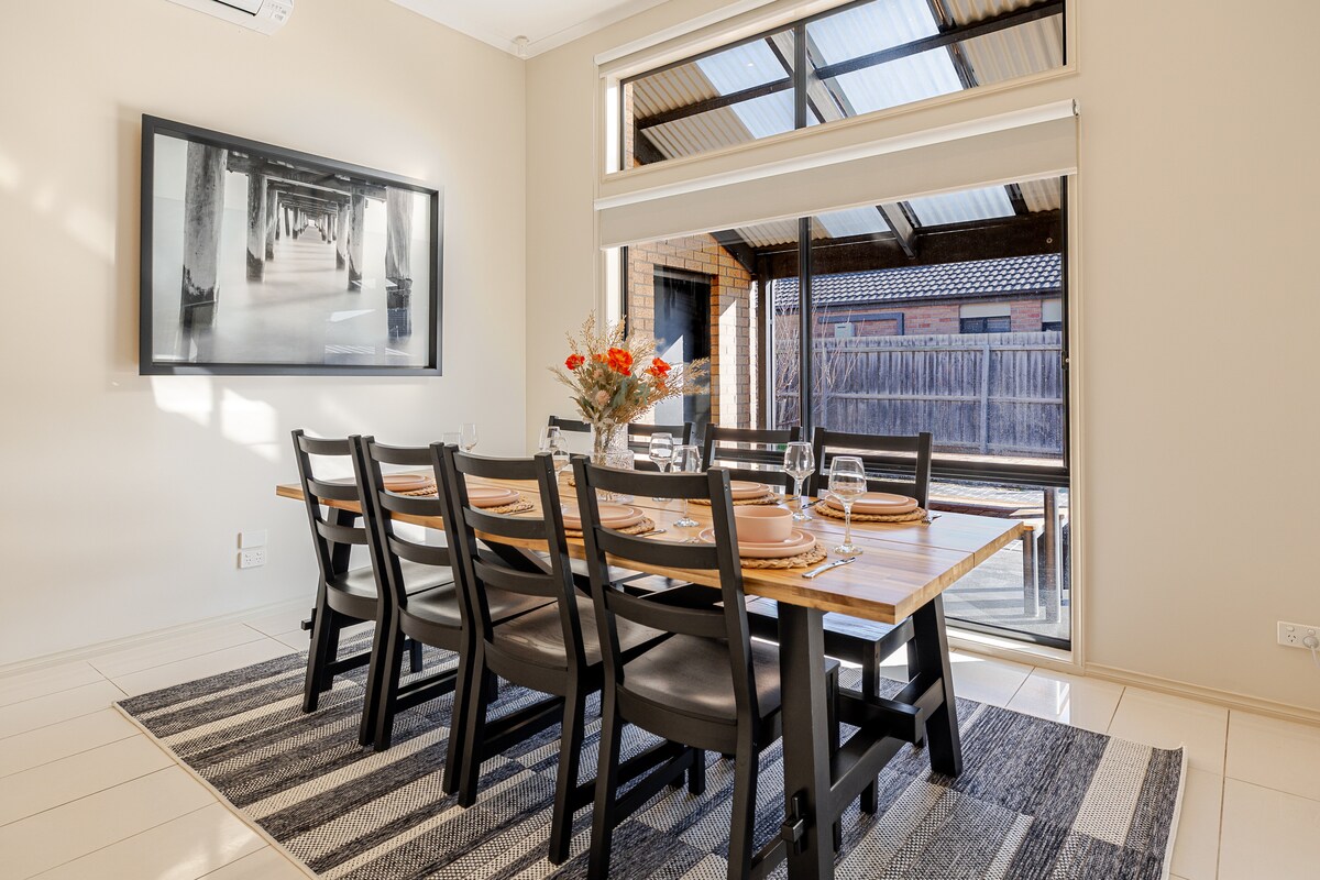 El hogar es donde está el corazón. Aléjate del bullicio de la vida de la ciudad y relájate en mi casa elegantemente decorada que ofrece una nueva sauna de infrarrojos al aire libre. La Casa Serenitá es ideal para parejas o familias pequeñas que buscan un retiro de fin de semana tranquilo o para viajeros de negocios que buscan un refugio tranquilo durante la semana. La casa está convenientemente ubicada en un vecindario tranquilo cerca del distrito financiero de Geelong, la costa, el estadio GMHBA, así como cualquier ciudad o atracciones turísticas en la península de Bellarine.