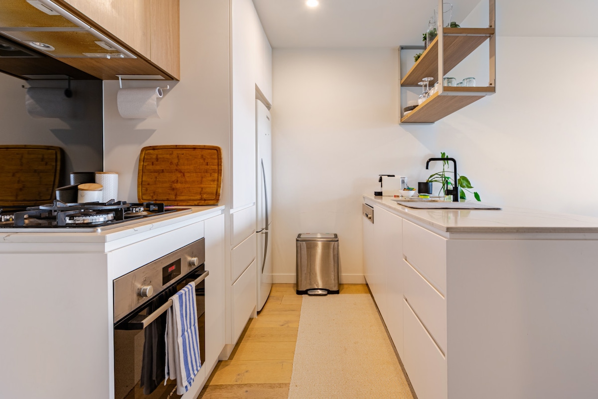 ¡Te damos la bienvenida a tu acogedora estancia moderna en Brunswick West! Este elegante apartamento de 1 dormitorio y 1 baño cuenta con elegantes comodidades, un balcón privado con vistas a la ciudad de Melbourne y estacionamiento subterráneo seguro y gratuito, perfecto para huéspedes con automóvil. Ubicación LO más destacable: • Excelentes cafeterías cerca • Acceso incluido al gimnasio. • A 20 minutos en coche del distrito financiero de Melbourne • Fácil acceso a tranvías y autobuses Ideal para viajeros solitarios, parejas o huéspedes de negocios que buscan un refugio tranquilo cerca del corazón de Melbourne.