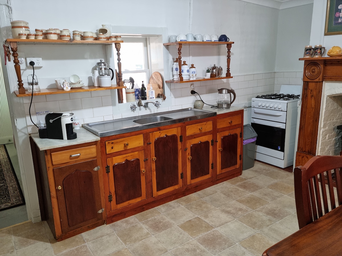 Step back in time at this 1880s miner’s cottage in historic Moonta Mines. Built over 140 years ago and extended in the early 1900s by the man who built many Yorke Peninsula roads, it still features the dining room, kitchen and bathroom he added. Lovingly owned for 12+ years and renovated twice, the cottage blends original stone walls and low doorways with modern comforts, a cozy wood fire, a well-equipped indoor & outdoor kitchen, and a big backyard perfect for BBQs under the dark night stars.