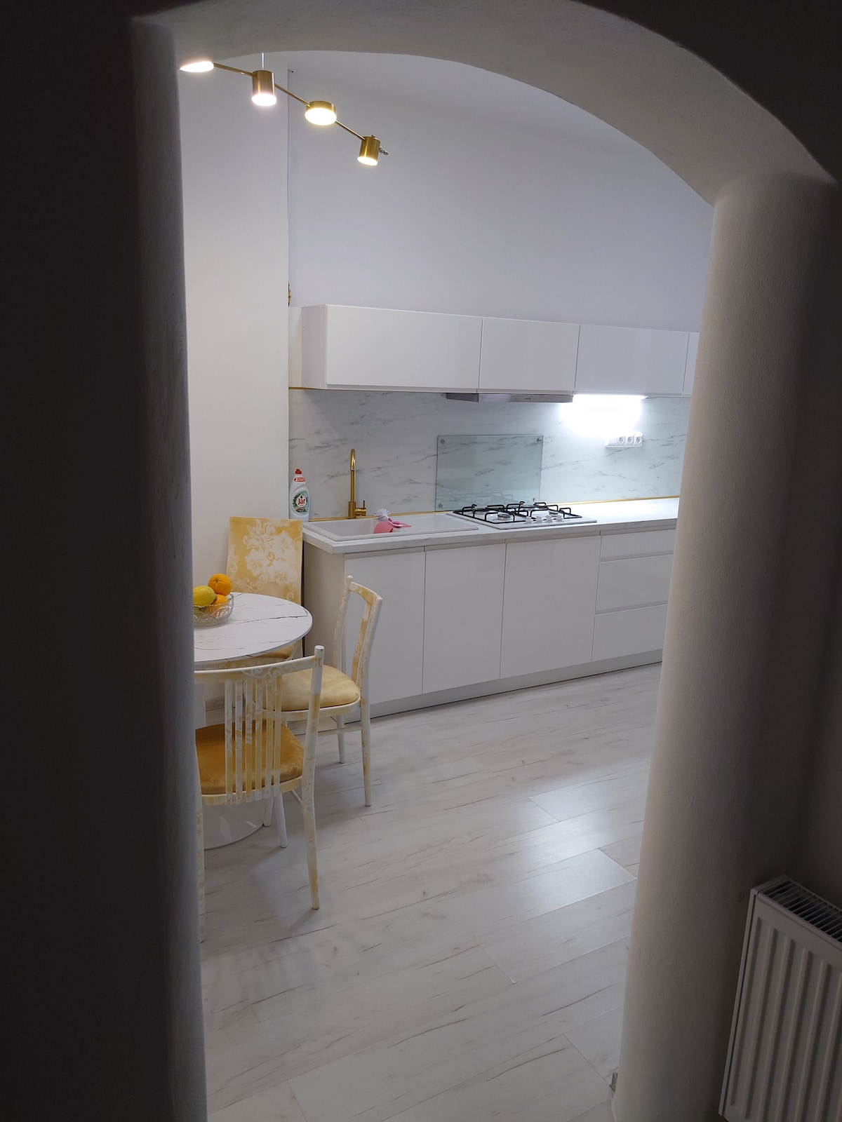 Moderně zařízený apartmán v centru města o dispozici 3+kk. Dvě samostatné neprůchozí ložnice s manželskými postelemi, kuchyň, obývací pokoj s jídelnou, koupelna. V obývacím pokoji k dispozici rozkládací sedačka (šířka 140 cm) pro pátého a šestého hosta. Apartmán se nachází v blízkosti centra města, obchodního centra Nová Karolína a oblasti Dolní Vítkovice.