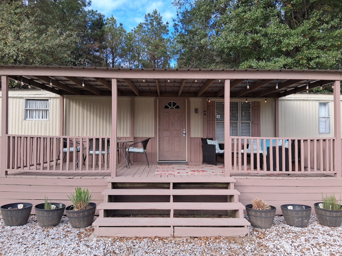Nuestro padre construyó esta casa a partir de 1981. Se encuentra en nuestra granja de 40 acres, frente a la casa de campo de mi hermana, a unos 100 metros de la casa que comparto con nuestro sobrino, que fue construida originalmente por nuestros abuelos en 1939. Es tranquilo, remoto y silencioso. Se encuentra a unas siete millas de las tiendas de comestibles y restaurantes más cercanos en Bastrop, y a una milla de un Dollar General en Collinston. Hay wifi en la casa, así como un televisor Roku.
