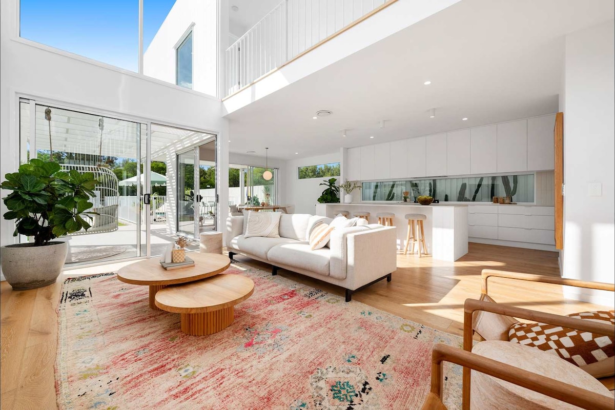 Diviértete con toda la familia en la hermosa isla de Bribie en tu propia casa estilo resort totalmente equipada, con aire acondicionado, renovada, con sala de juegos, mesa de billar, entretenimiento al aire libre, fogata, trampolín, refugio para niños, ropa de cama premium, aire acondicionado y mucho más. Ubicado a solo 1 minuto en auto / 5 minutos a pie de Sylvan Flat-Water Beach en Pumicestone Passage, a 8 minutos de Patrolled Surf Beach. ¡Un sinfín de actividades con deportes acuáticos, pesca, natación, parques infantiles, cafeterías, taberna, equipo de ejercicio al aire libre y más!