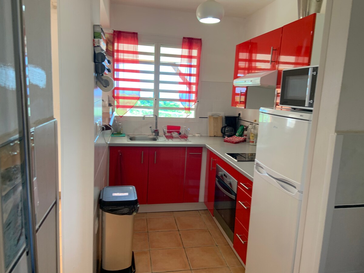 Dans quartier résidentiel très calme le WAYAKOYA, petit bungalow aux couleurs locales de 40m2 pour 2 adultes + 2 couchages en mezzanine ( surtout pour enfants)+ lit et chaise bébé 1 chambre climatisée lit de 160 1 salle d'eau+ wc 1 cuisine+ salon en terrasse 1 piscine privée 1 entrée privative wifi lave-linge & vaisselle four, micro onde frigo congélateur draps linge toilette & plage fournis Port commerces plage à 5 mn A l'arrivée apéritif de bienvenue offert