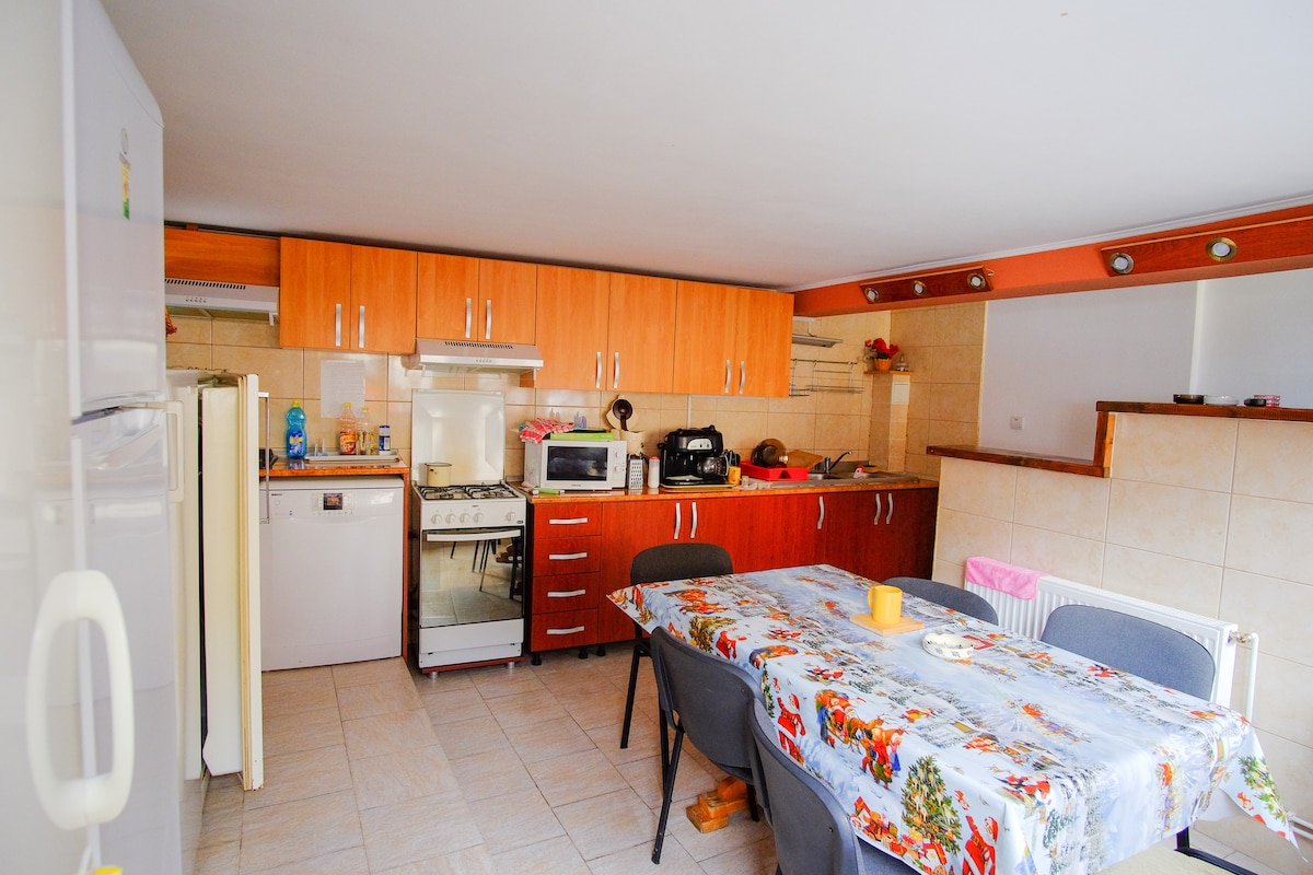 It is located near the Kalinderu Ski Slope, in a quiet area, with a playground for children in the yard, a barbecue area, a spacious dining room and a fully equipped kitchen. We also have a saltwater pool which is available for a fee and by appointment.