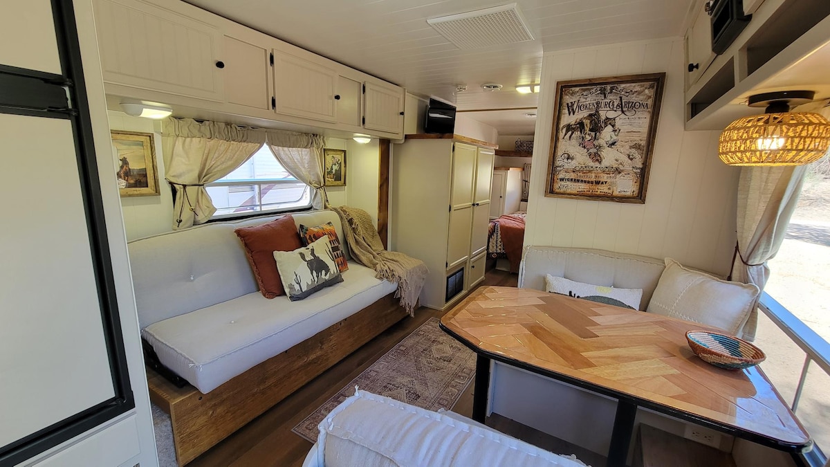 Enjoy a peaceful & cozy stay in this passionately restored Historic Wickenburg home, with all of the modern conveniences of today. Located in central Wickenburg close to arenas, museums, shopping & dining within walking distance. This home offers nearby access to horse boarding for 2 horses and storage for 1 horse trailer included during Airbnb rental duration at Aisling Ranch. Additional stalls, storage, arena, round pen, hot walker, wash stall & hay for an additional fee.