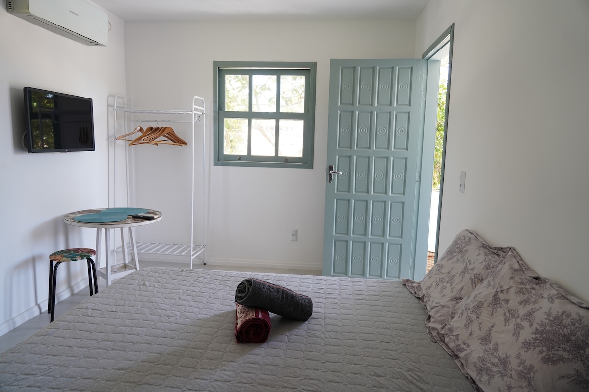 Casa bem iluminada, arejada e aconchegante. Um quarto com cama de casal, mezanino com colchão casal. Um banheiro (chuveiro elétrico). Área externa com chuveiro, tanque, churrasqueira e estacionamento. Cozinha completa. Varanda e sacada com vista para a Pedra do Urubu. Terreno bem arborizado. Mesmo perto do "centrinho" e da praia (cerca de 5 minutos a pé - 200 metros), o local é tranquilo e resguardado. Procedimentos sanitários adotados para um maior cuidado com a saúde de todos.