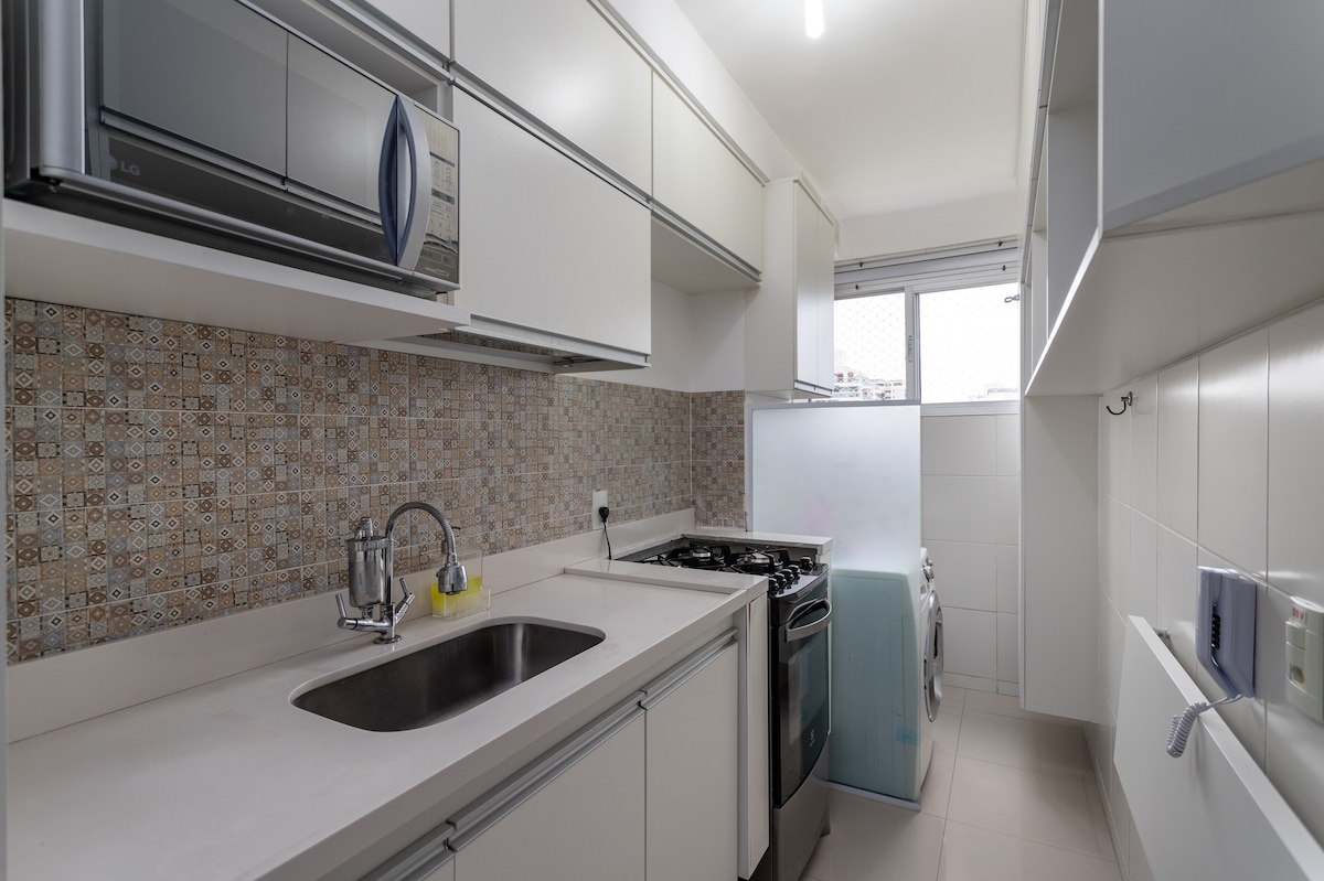 El apartamento es luminoso, espacioso y está cuidadosamente preparado para ofrecer comodidad. Cuenta con dos camas individuales que se pueden unir para formar una cama doble, así como TV por cable, aire acondicionado, armarios y una cocina equipada con minibar, microondas, cafetera, filtro de agua, cocina de inducción y sandwichera. Ideal para quienes viajan por placer o por trabajo. El condominio ofrece una excelente infraestructura, con piscina, sauna, gimnasio y restaurante.