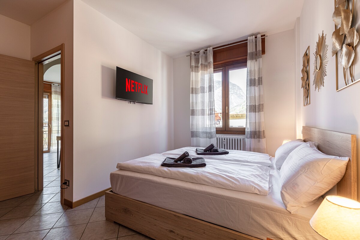 Located in a green and relaxing area just a few minutes from Tirano and the red train station, Valtellinahome is an apartment located in a recently built class A house. Transfer to/from Tirano station and the Bernina Express. No tourist tax You will find an equipped garden, private parking, a balcony, free Wi-Fi and air conditioning. Box for bikes and skis. The accommodation is ideal for 3 adults or two people and 2 children.