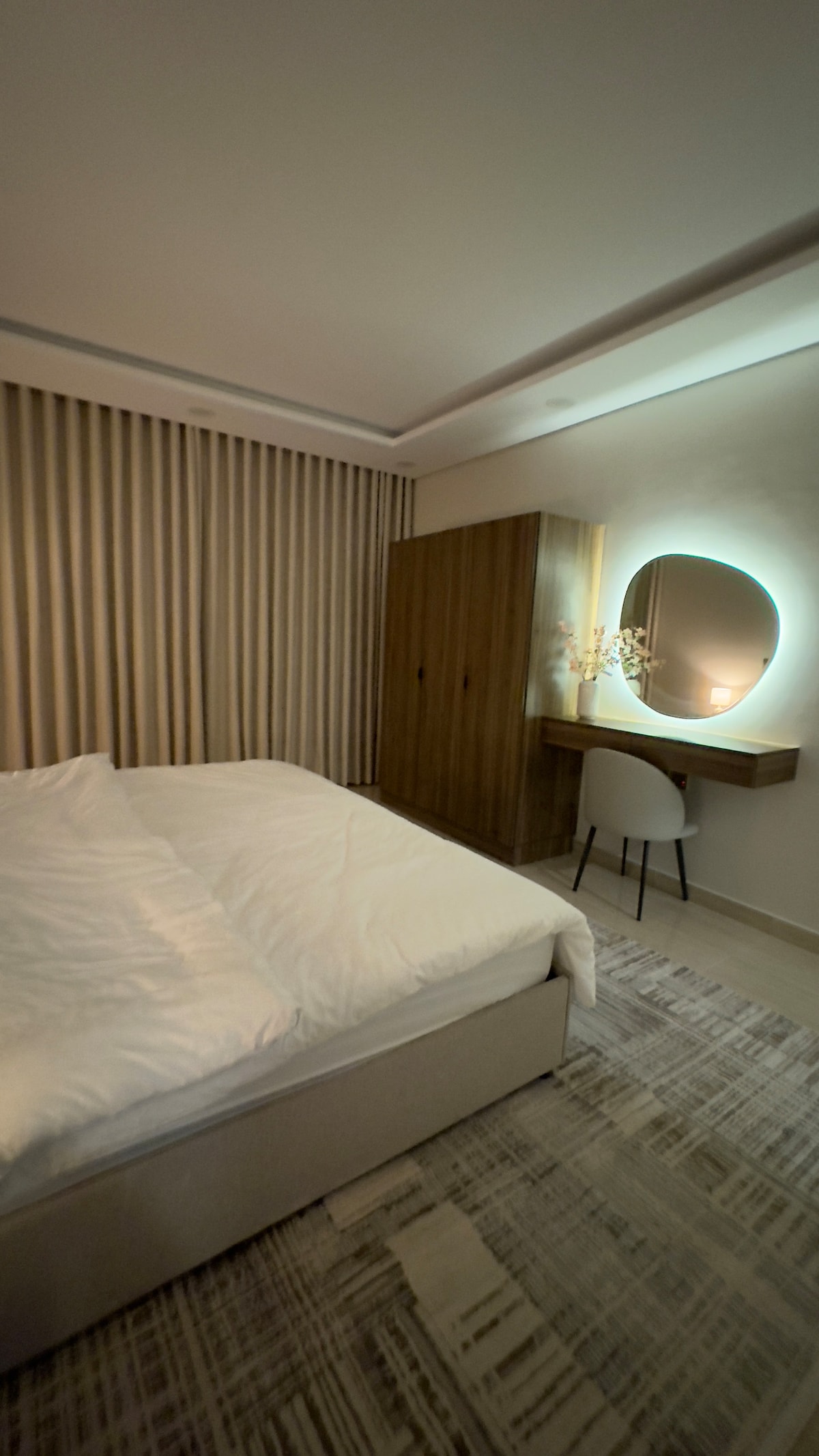 استوديو واسع وهادئ، يتوسطه سرير كبير يمنح شعوراً بالراحة، وبالقرب منه جلسة أنيقة تضم أريكة مريحة وطاولة جانبية بسيطة. المكان منسّق بشكل عملي وواضح، وإضاءته لطيفة تضفي عليه طابعاً دافئاً ومريحاً.. يبعد ١،٩ كم عن مواقف كدي ، أقرب محطة حافلات تبعد ١٠٠ م ، يبعد ٥٠٠ م عن ممشى بطحاء قريش ..