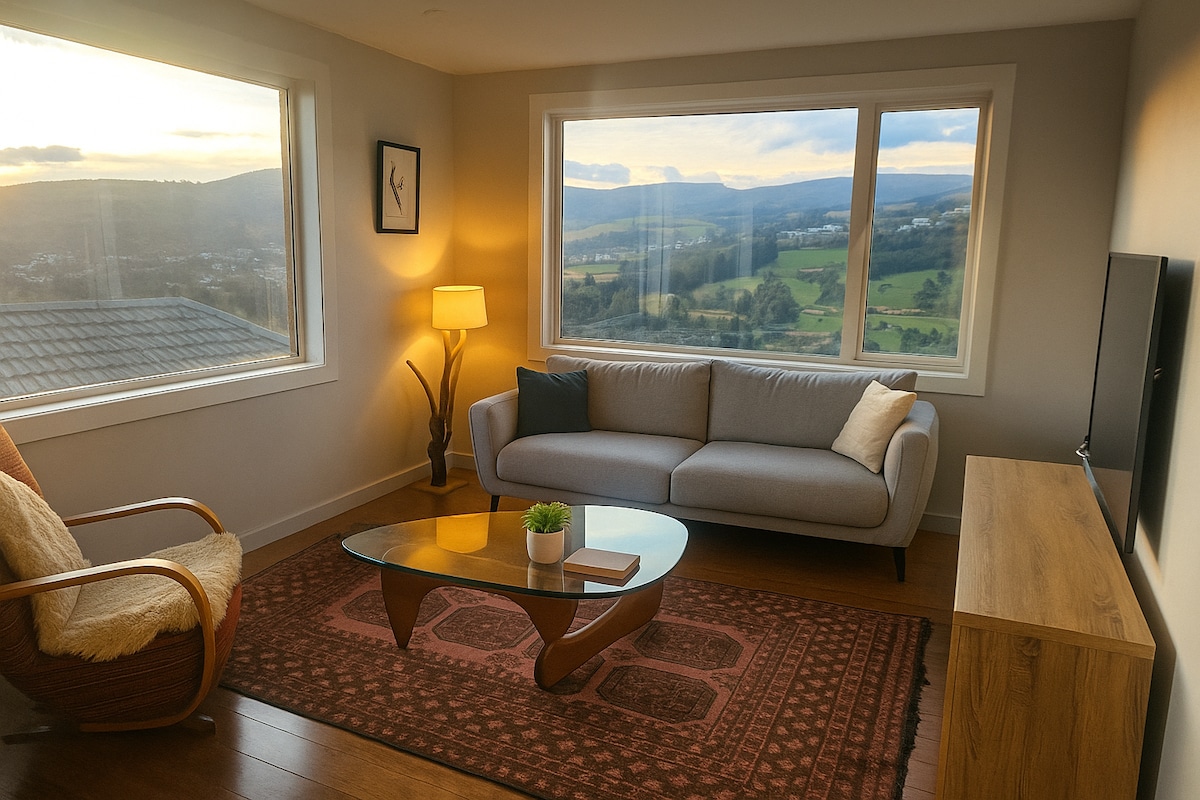 Apartamento estudio para uso a corto/medio plazo. Moderno y cómodo. Impresionantes amaneceres sobre el puerto de Otago. Acceso independiente, aparcamiento fuera de la calle, terraza propia, lujosa cama tamaño king, bomba de calor, armario empotrado, TV y barra de sonido, wifi de fibra, baño moderno, lavadora, cocina americana independiente, microondas, nevera con congelador. Si me avisas con antelación, puedo tener dos bicicletas disponibles, se aplica un cargo adicional. Situado en St Leonards, a 7 minutos en coche de Dunedin o a 5 km en bicicleta por el carril bici del puerto.