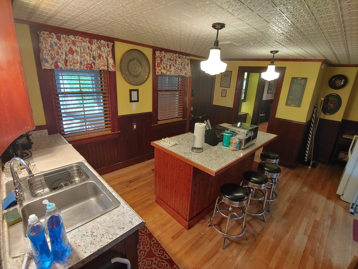 Lovingly restored Victorian; heart of Ellsworth; 5min walk to dining/shops; yard w/fire pit; close to Bar Harbor/Acadia; best of both: tour by day & nights by fire/in pubs enjoying real Maine welcome; share 1st flr (library, fireplace parlor, dining room & well stocked kitchen) with 1 other suite; private access to your suite; Queen beds. THE POSTED RATE IS 1BR ONLY; Please message us for the 2 BR rate. Can book whole house/8+ guests with other suite (see: airbnb.com/h/lodgingsonpinefloralsuite