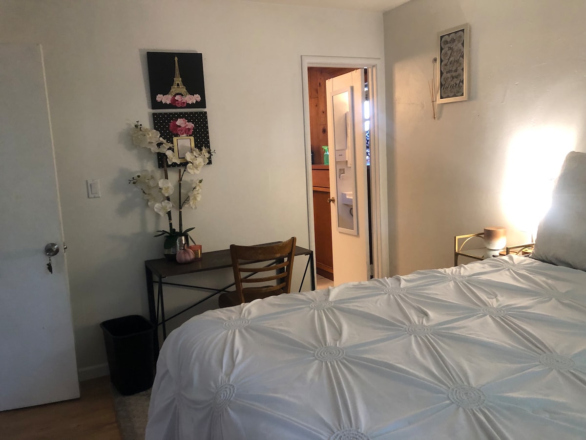 Make yourself at home in this master bedroom with newly remodeled attached bath all to yourself! You'll have your own private entrance with self check-in. Your room is nestled away in a friendly and quiet neighborhood on a hill overlooking Silicon Valley and mountains. This is the perfect place for a peaceful getaway. We welcome you to relax from the hustle and bustle of Silicon Valley, while still being close to Downtown SJ, SJC airport, major tech companies and public transport.
