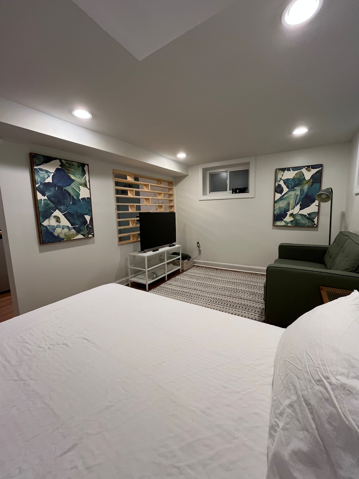 Espacio abierto perfecto para 1 o 2 huéspedes. Cómoda cama tamaño king, sofá, espacio de trabajo, mininevera, microondas, hervidor eléctrico y Keurig (pero no una cocina completa). Entrada privada, espacio en el sótano y baño privado. Cerca de fabulosos restaurantes/bares. A unos 15 minutos a pie de la línea verde del metro. Nota: Si bien la suite es privada y está cerrada a la casa principal, la casa tiene 2 gatos, una consideración para aquellos con alergias. Además, es una casa antigua y conectada con suelos originales y, por lo tanto, no insonorizada.